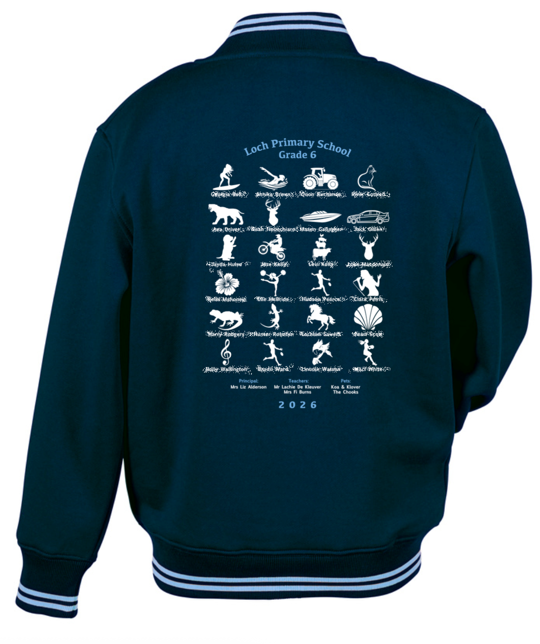 These garments celebrating grade 6 students are special order custom garments. Please ensure you use the sample sizing stock at your school to get the right fit as unfortunately we are unable to accept returns or exchanges on these items.